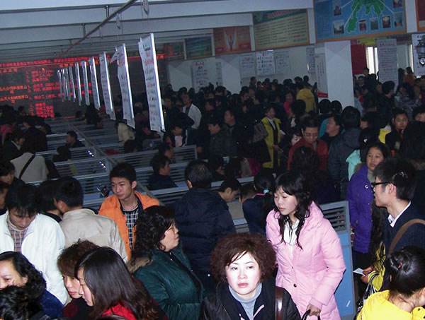 眉州人才市場(chǎng)一直堅(jiān)持每周星期五定期舉辦現(xiàn)場(chǎng)招聘會(huì),2009年2月6日(星期五)春節(jié)后的第一場(chǎng)招聘會(huì)火爆開場(chǎng),1200平方米的招聘大廳被擠得水泄不通。招聘會(huì)共有103家用人單位進(jìn)場(chǎng)招聘,提供崗位1800余個(gè)。來自市內(nèi)外的3000余名求職者進(jìn)場(chǎng)應(yīng)聘。此場(chǎng)招聘會(huì)參會(huì)的大中專畢業(yè)生占比例較大,技工類、服務(wù)類、醫(yī)療衛(wèi)生類、營(yíng)銷類崗位需求量較大。